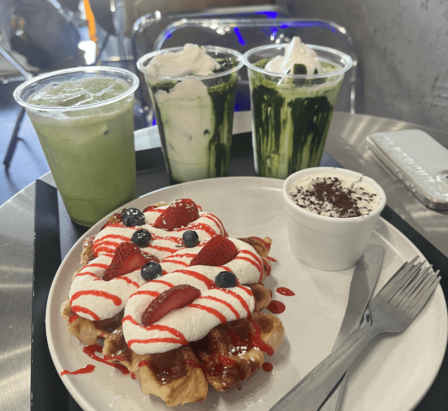 enjoying matcha with tasty pastries :)